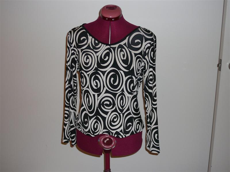 The black and white print knit top is a piece of fabric that I bought at Pitt Trading a few weeks ago. For all of $5, I thought this would be an easy top to make a wear. It was slightly slippery and the neckline finish drove me nuts. It didn’t drive me to drink ’cause I’m still getting over the flu.