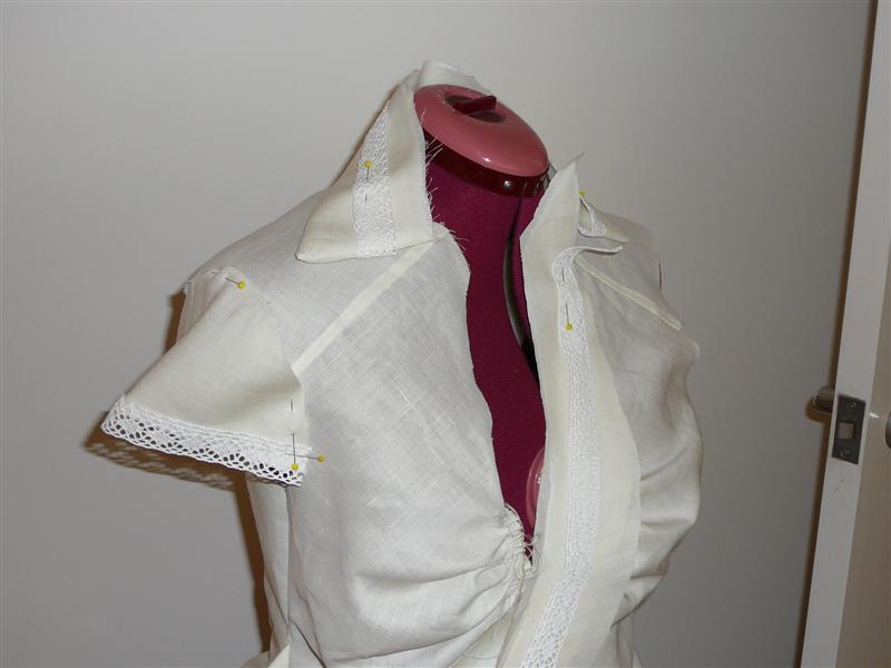 Here’s what I discovered when I made the gathers on the bust, as suggested by the pattern. When I tried it on, I felt stupid to have such a lot of gathers on my bust. Then I decided to use a trim to deflect the gathers at the bust.