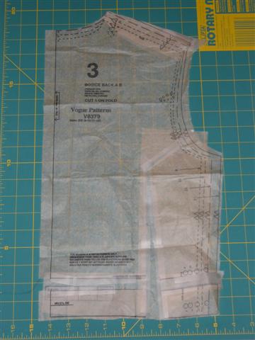 This pattern has a couple of pleats at the waistline that I left in to see how they helped the style line. After measuring the shoulder to waist measure, I elongated the bodice by adding 2 cm because the waistline seemed too high for me
