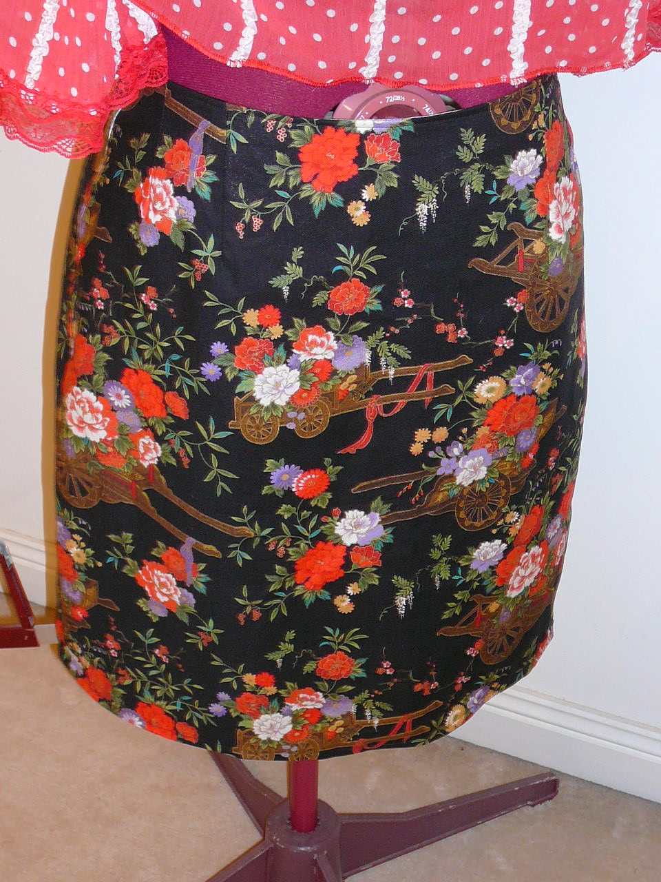 Here’s the next skirt in dark fabric and I had to match the pattern somehow, on the skirt.