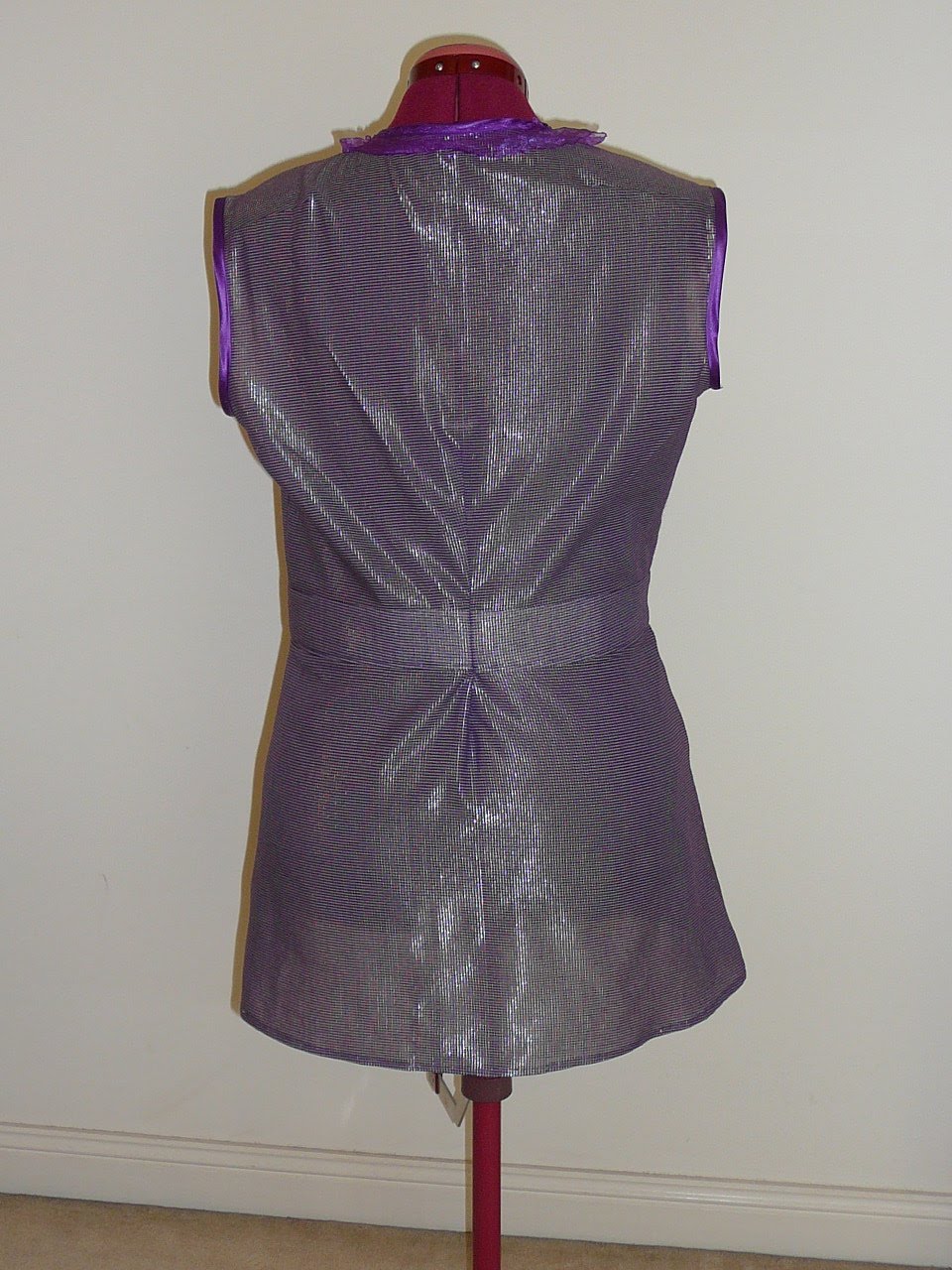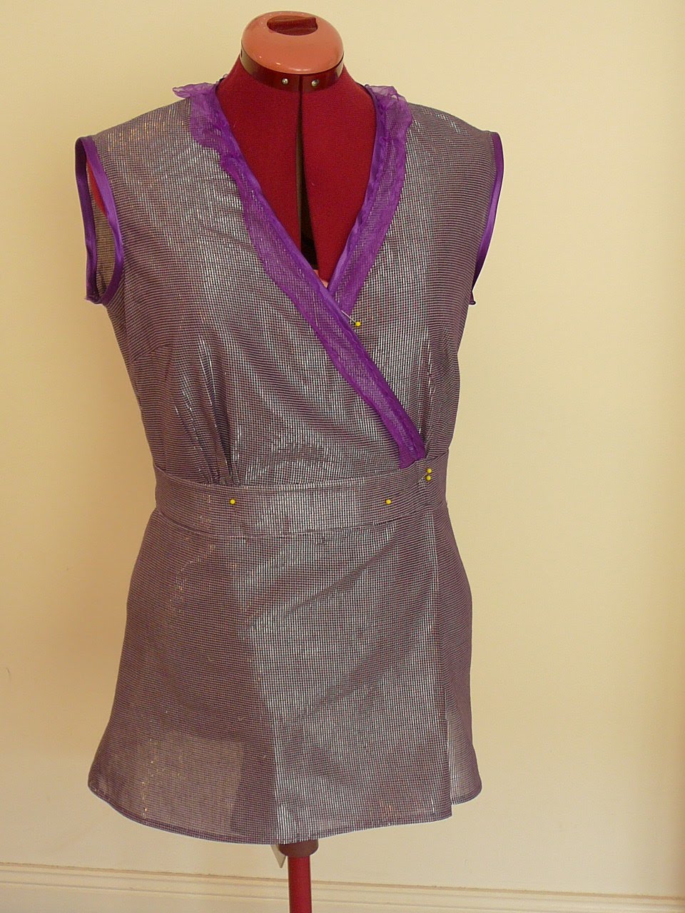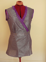I added the purple bias to bring out the purple colour as the fabric is a big grey with the silver. The fabric is more suitable for a western hoe down outfit but I thought this top would work with dark skinny jeans, and it does. Once I get the buttons done, I’ll post up a final pic.