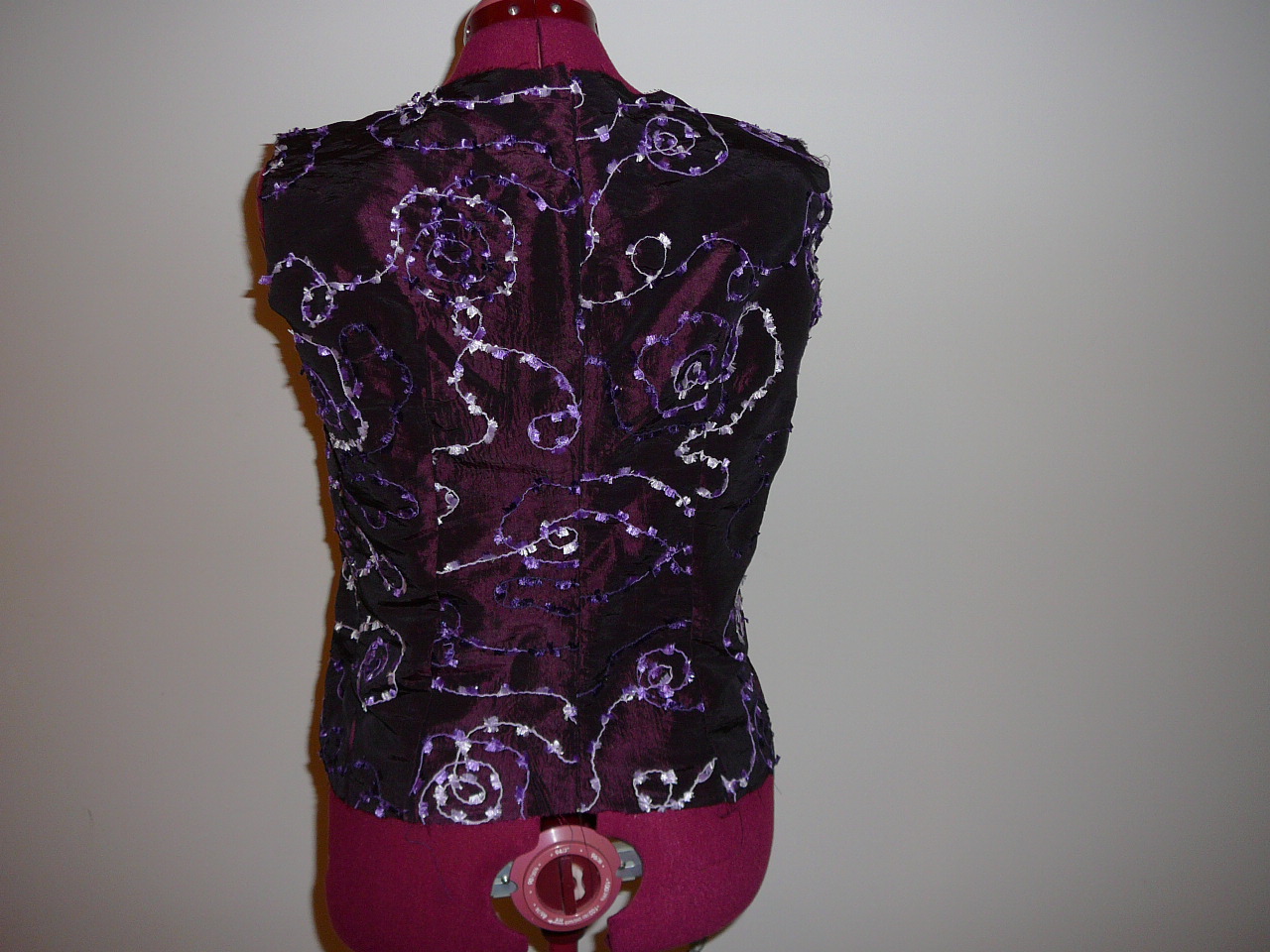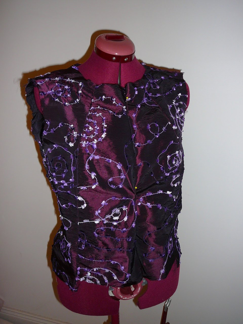 The fabric was a Pitt Trading remnant, so I’m not sure of its makeup but I loved the colour and the embellishment.