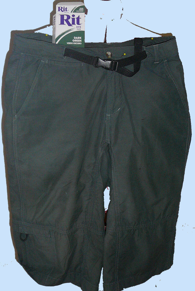 My cycling duds became a very pale grey and now with a cold water dye bath, they’re back to their former dark green shade. On the other hand, the gardening pants are definitely lighter and a very’nothing’ green.