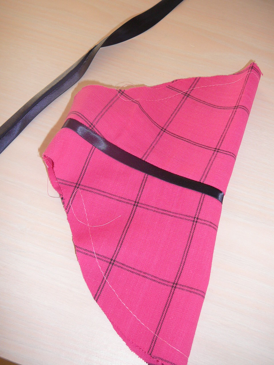 The check is large and navy blue, so I’ve used a dark blue bias on the sleeve hem.