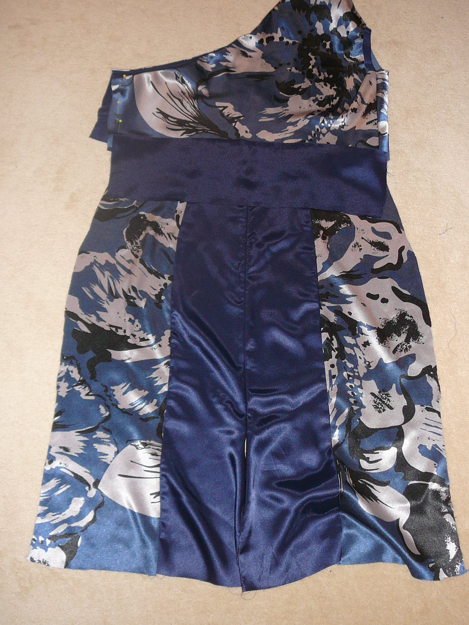 Happy New Year to everyone. It’s been a big ‘get organised weekend’ (kitchen, bathroom, sewing room, pending US sewing trip) and eventually I did manage to make some progress on this one-shoulder dress. And I have an event to wear it to at the end of the month – yipee!