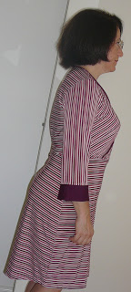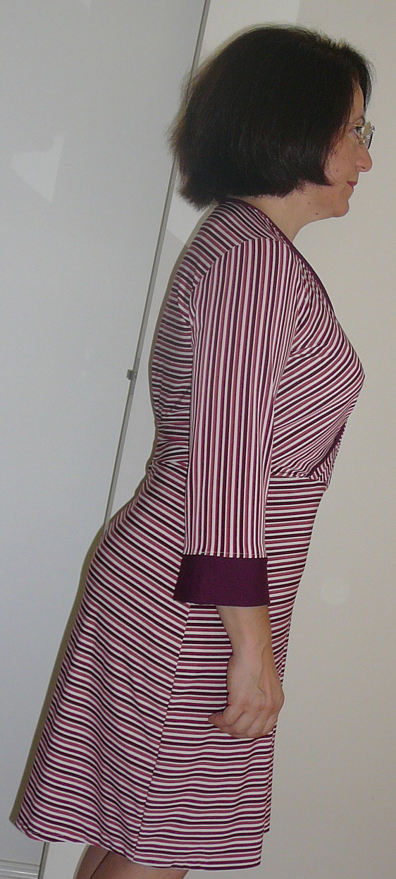This morning was much cooler and not as sticky, so I’ve taken these reality shots of the striped dress so you can see the fit. I will readjust the bodice back because of the fullness at the waist.