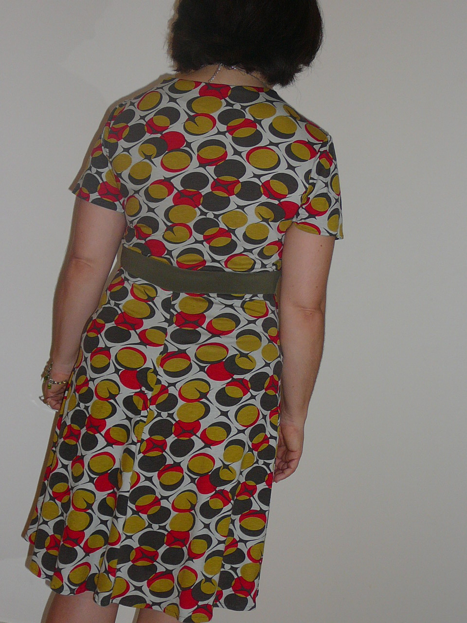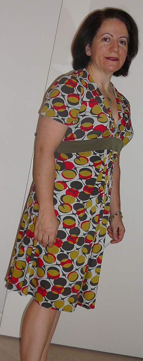 The neckline is well placed and from the PR Reviews I lengthened the front waist darts by 3 cm, to avoid the maternity dress look. Below is the back skirt. I’ve taken out some of the skirt fullness. I don’t have the height to carry it off. The other issue is the skirt was too long and made the dress seem matronly, so I’ve raised the hemline and will adjust it again at the centre front again.