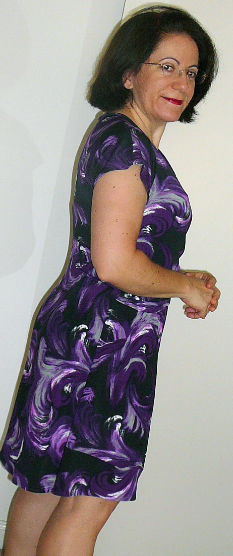 Pretty and flattering dress! The purple really suits you.