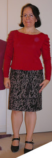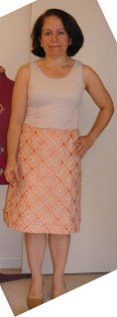 Your red Butterick top is really cute. Also love the peachy colored skirt you bought. What a beautiful outfit with the silk/satin blouse. Glad you are beginning to get back to your sewing self!