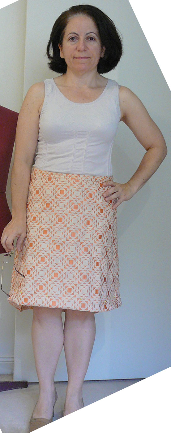 Your red Butterick top is really cute. Also love the peachy colored skirt you bought. What a beautiful outfit with the silk/satin blouse. Glad you are beginning to get back to your sewing self!