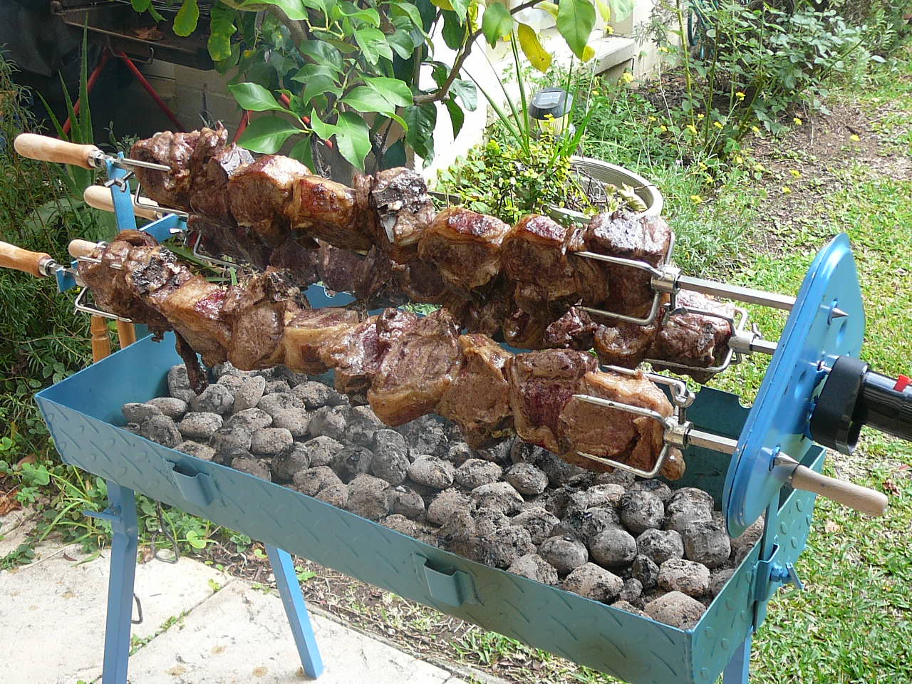 Good pieces of meat lined up the fat side next to a meat side along the skewer helps to baste the meat throughout. The coals were lit ahead of time and the meat skewers were added once the coals became grey. You don’t want any flames during the cooking process.