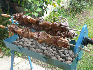 We won a souvla a couple of months ago so Greek Easter was the perfect time to test it out. DH got advice from the Souvla oracle (DB) and with some lamb loin pieces from Supreme Souvla (Belmore) the result was a success.