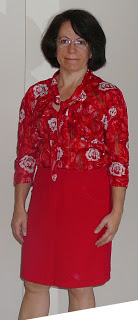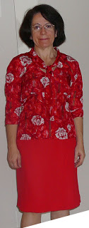 It wasn’t too hard to find red fabric to match my new silk blouse. In fact there was a red skirt that I’d made last year and needed a bit of adjusting at the waist Vogue 8426 view A.