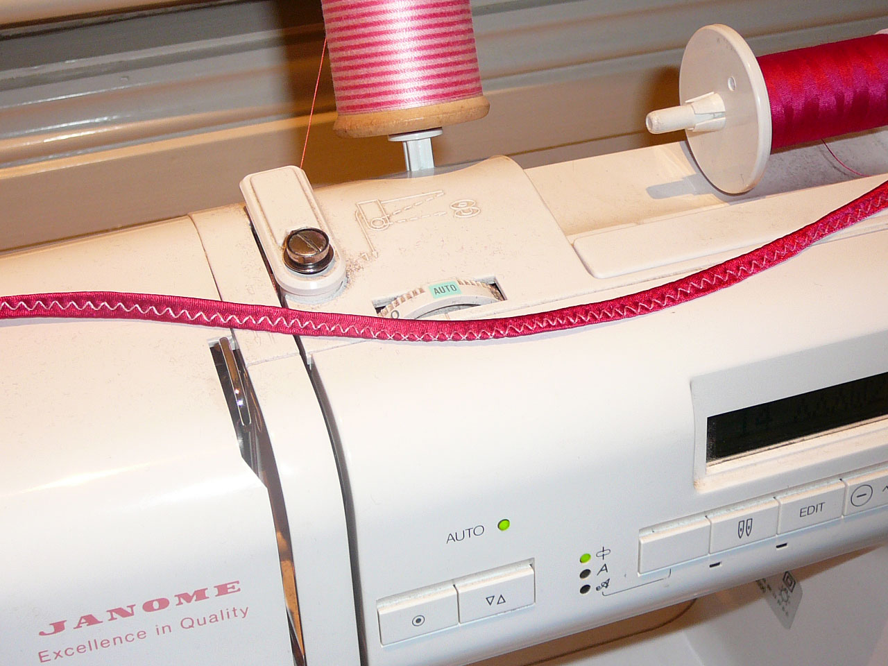 Below is the buttonhole detailing that I attempted with the varigated pink thread I also used it on the front tab stitching but it ended up looking like white thread. I bought the thead from St Vinnies near work. I used the matt side of the fabric for the neckline and collar pieces.