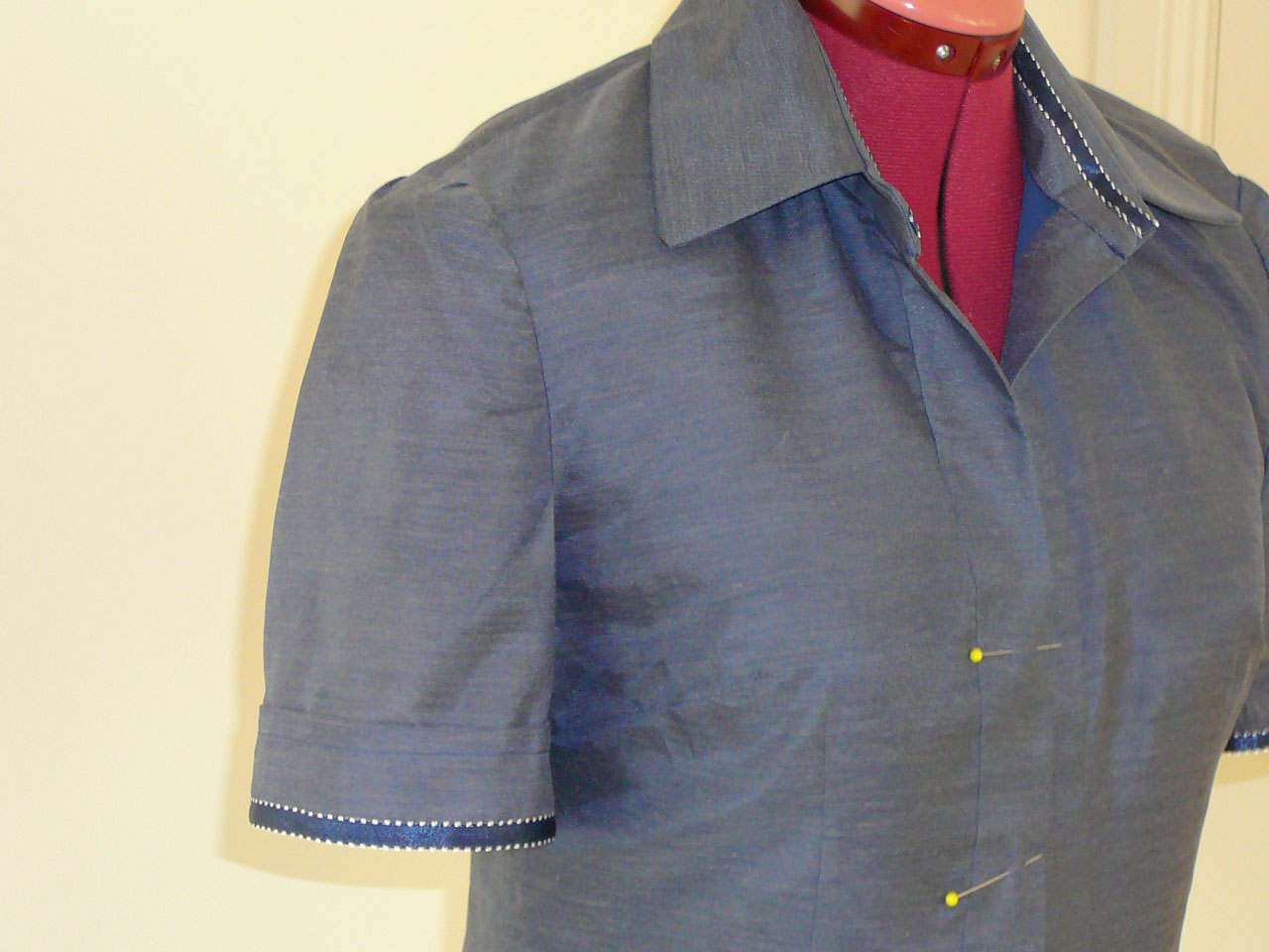 As you can see, the sleeve has the same ribbon detail as the inside collar stand. The lining is the same dark blue colour as the ribbon detail, so I think it might be worthwhile getting dark blue coloured buttons. What do you think?