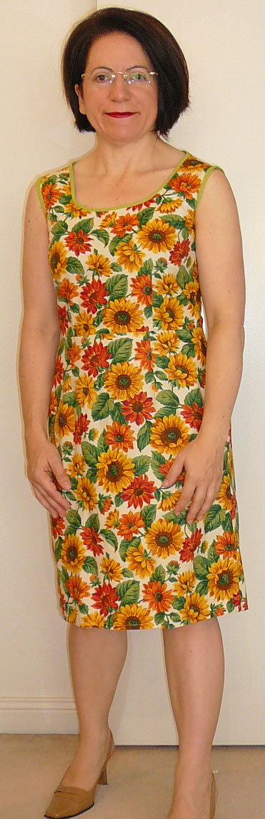 This dress took 2 hours to fix. I cut off the sleeves, dropped the shoulder seams by 2cm, turned in the sleeve edges and took the side seams in by 1 inch.