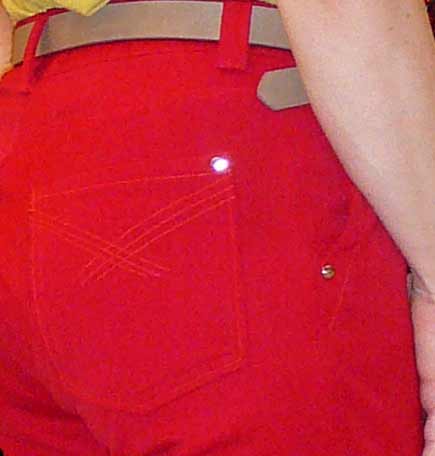 Oh, I love your red jeans too. The pockets look so nice on the back. I have been wanting to make these pants again myself and have some funky flocked denim to make them with. I must get some rivets though. They really are a nice detail on jeans.