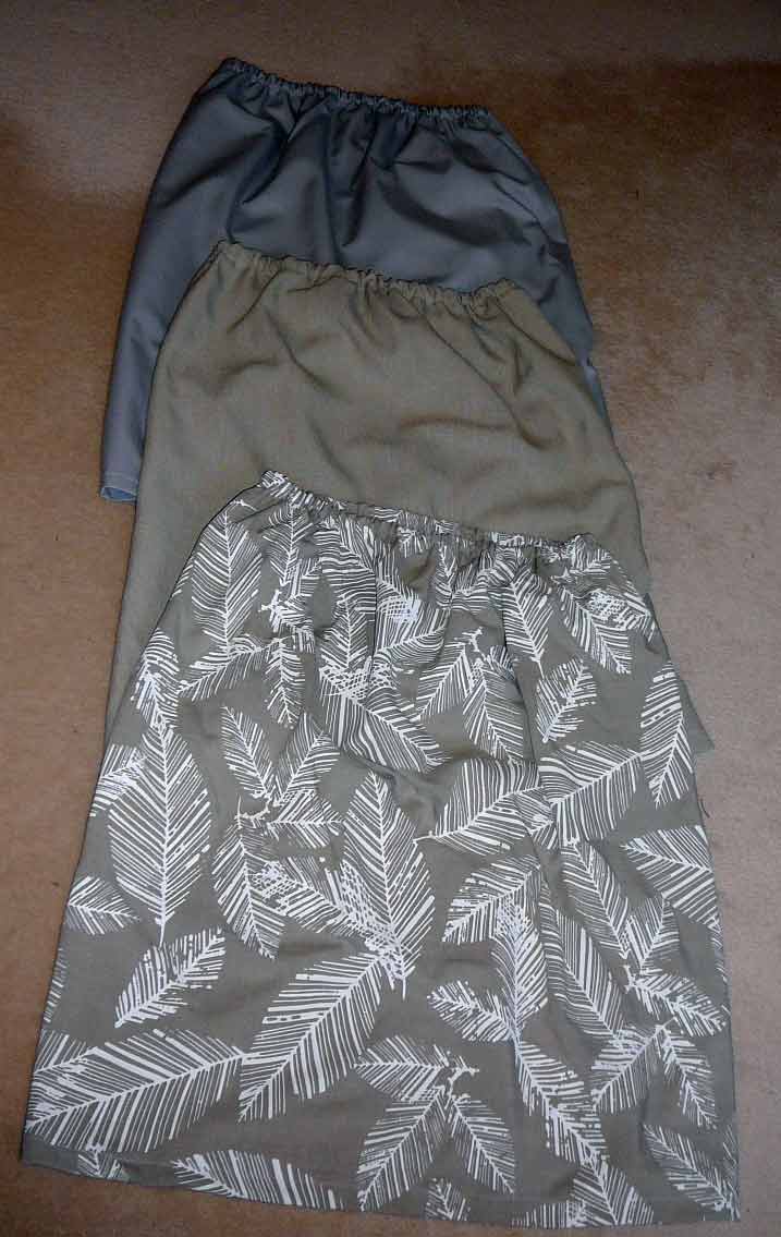 When the seasons change, I check Mum’s clothes to see what I can do to give her ‘options’ for her lifestyle and less flexible hands. This time I’ve developed a beige collection with easy to wear skirts and I’ll working on some light coloured knit tops for some new winter layers.  I made her a fleece coat last winter so this will also go with this collection. The previous skirts I made her were all dark and her measurements haven’t changed since 2010.