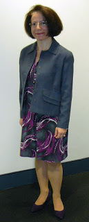 The knit dress is great made up in printed fabric and I made this version in 2009. This morning I made some adjustments in the centre back and centre front to make it fit better. I’m also wearing the slip of desperation to stop it from clinging to my legs.