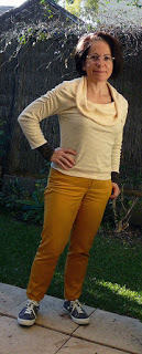 I love your terrific tops, the ruffle type fabric one really takes my fancy. I somehow have no cowl top patterns, but am suddenly thinking I need to fix this problem.The drape of your collars is just right in all the different fabrics, very nice.