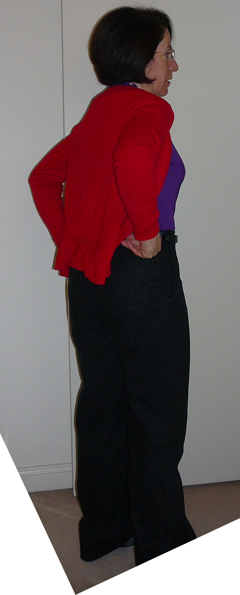 This dark flecky woollen pair is made from a Cue remnant that I bought from Pitt Trading last year. The weather reports were warning about the coming cold chill so I decided these trousers needed to be worn now.