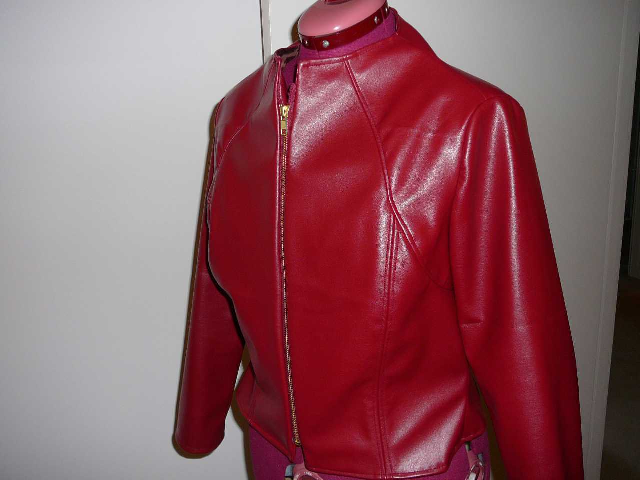 How fantastic! Matching gloves and jacket, I'm impressed and the red pleather looks great on you. I hope you get a lot of enjoyment wearing this.