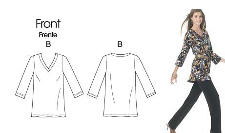McCalls 6247 V-neck top: This style uses a knit fabric with a print as the contrasting top with the combo. Knits will provide Mum with movement so that’s a good thing. What I might add is a chiffon scarf tie to this top from my Jalie pattern.