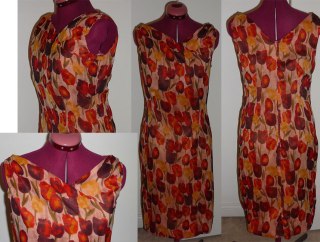 Did I say that I bought this print from Spotlight for $1.30/m, so I bought 5 metres for some Spring sewing. The lining is orange and this keeps the print colours strong. Below is my pattern pose. What were you thinking?