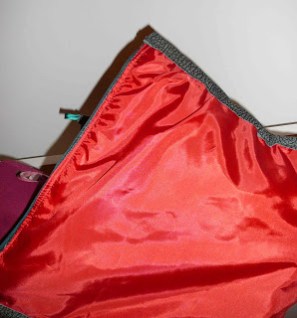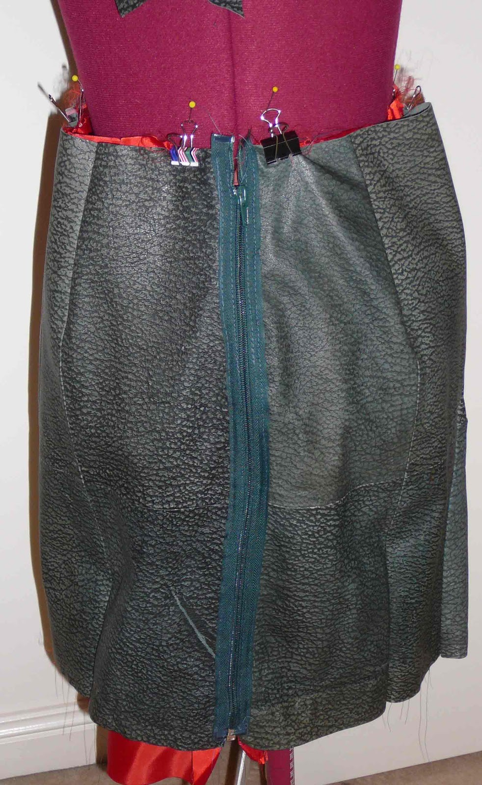 I love this red lining but for your purposes, this is a closer view of the insides of the skirt after sewing on the exposed zipper.