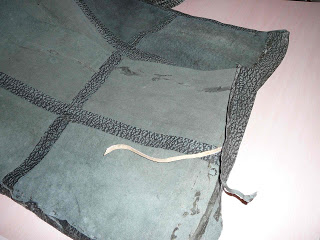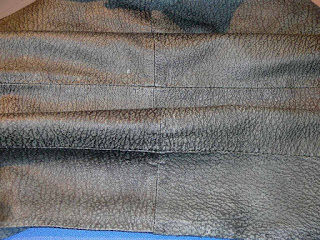I used the darkest pieces of leather because some pieces had started to yellow. The hem was noticeably yellow so while I did want to reuse the hem, it was too obviously yellow, so I cut this off.