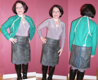 Fantastic skirt and what a great choice of leather. Gave new life to that tired jacket and it looks so current (not to mention expensive). Combined with the jacket it is such a stylish outfit, love it.