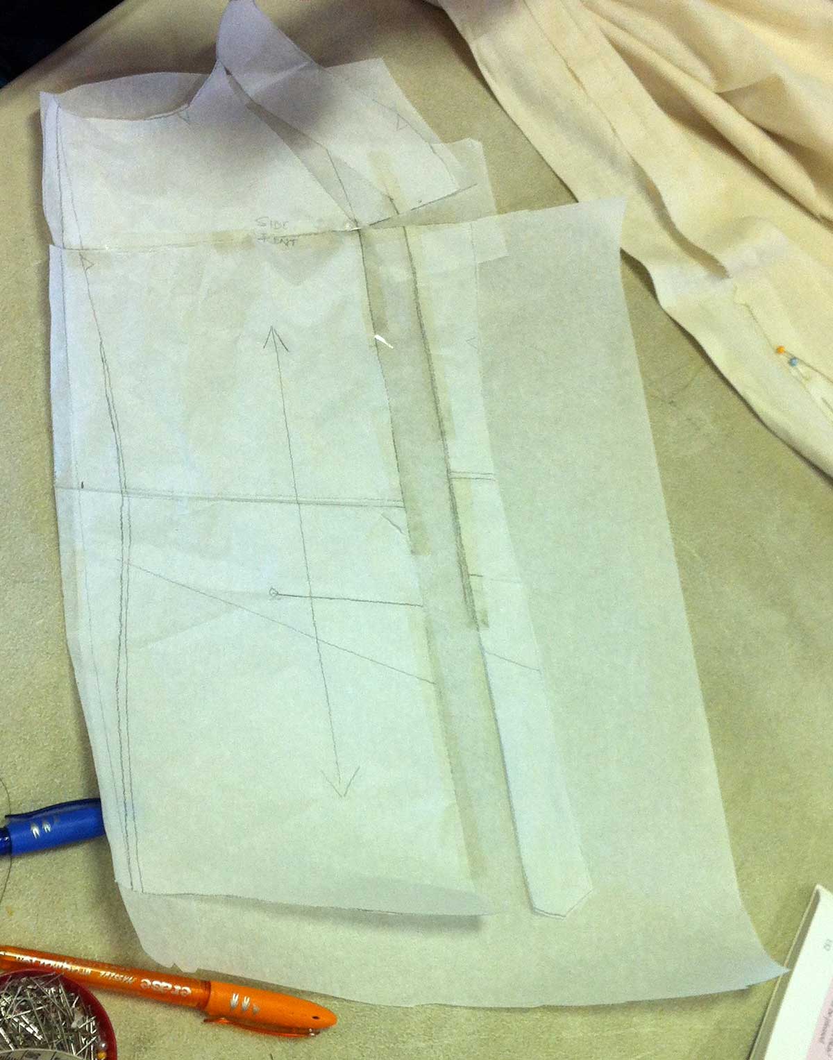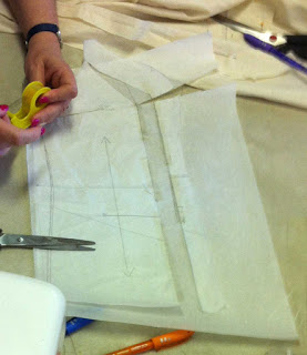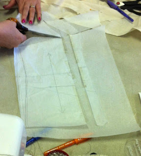Anyway the pics below show the steps Marea took to increase the bust width on a princess seam. This pattern below had the width added by adding a vertical line that pivots from the shoulder seam. What you see below is Marea closing the side dart and adding room at the bust point.
