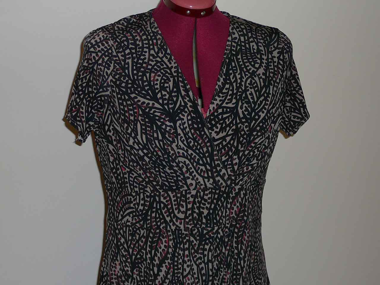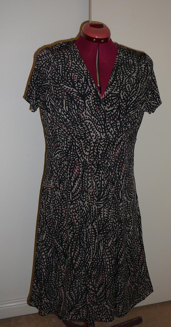 Each dress uses an all-over print knit in dark colours but the fit is spot on as is the length. The hems and necklines are have a cover pro finish. The rest was sewn with a straight stitch. Seams great has been used ot reinforce the shoulder seams.