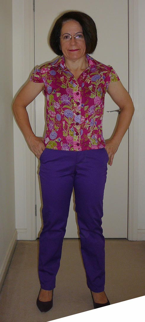 I agree with others re productivity – you must have a special dose of sewing steroids hidden somewhere! The purple pins are great – is it plain cotton or does it have elastane as well?
