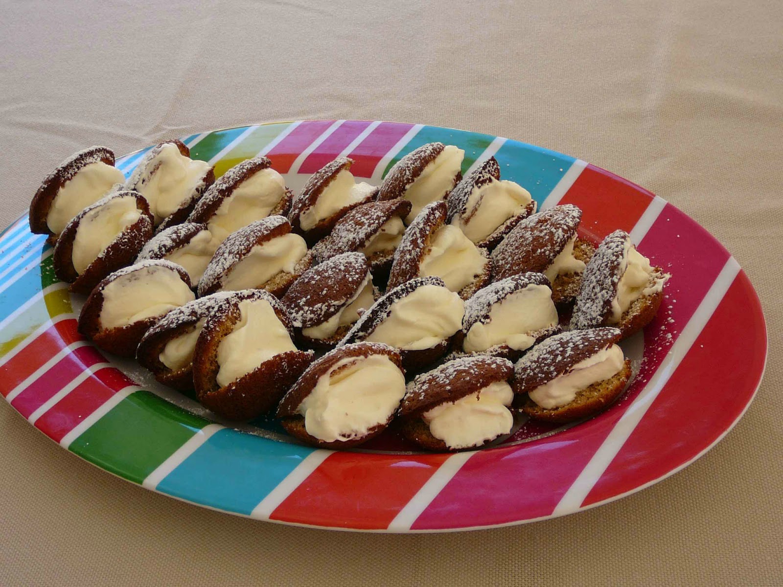 If you want to avoid cream, fill these with jam instead. The cinnamon ‘oyster’ is not very sweet.