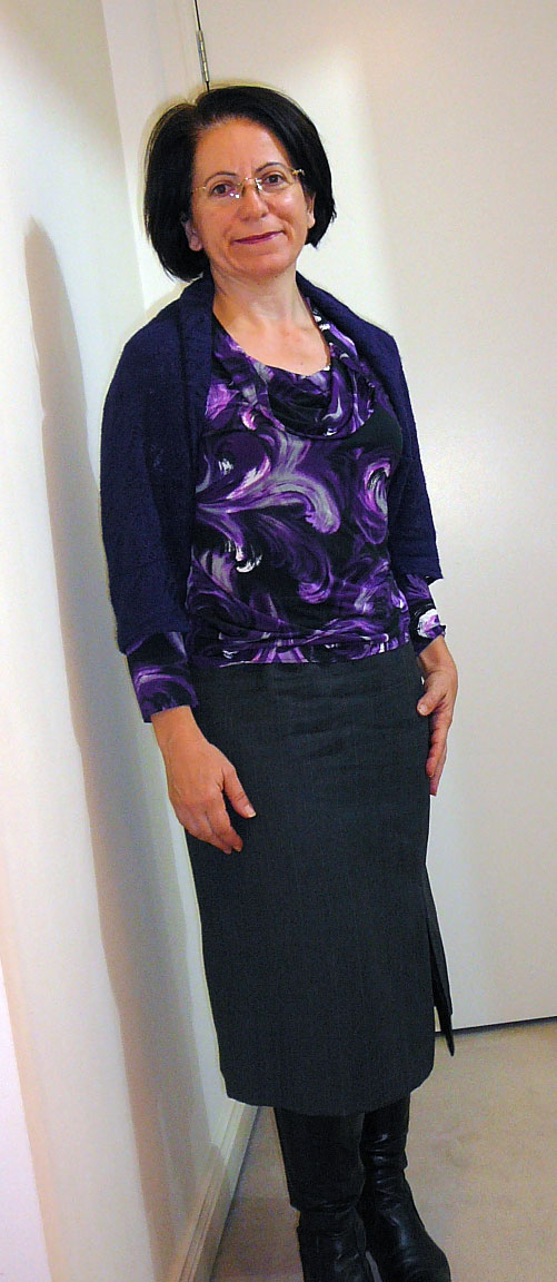 Day 21 is an after work pic. I made this wool skirt many years ago with a double-breasted jacket and a short skirt too. The fabric was given to me by an aunt from overseas so it took me some time to cut into it and I will always keep it as a memory of her and that visit.