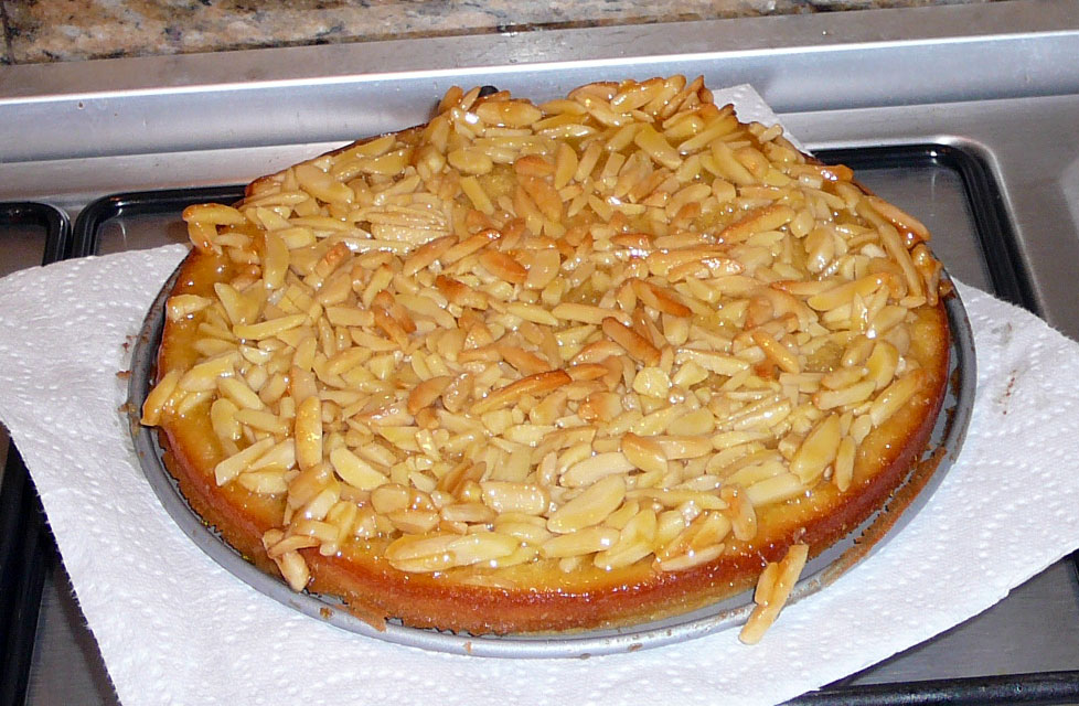 Reduce heat and simmer for 5 minutes stirring occasionally. - Quickly spoon the topping over the cake and return to the oven and bake for about 10 minutes or until topping is golden and caramelised.