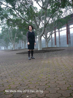 The Jalie 2921 scarf top was made last year and I’ve crossed the scarf tie and knotted it behind my neck. I’m at Sydney Olympic Park again but it’s foggy. Who said Winter is coming?