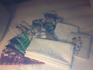 | These are the fabrics and classic Hawaiian patterns I bought. The darker prints were David’s fabric gift to me. |