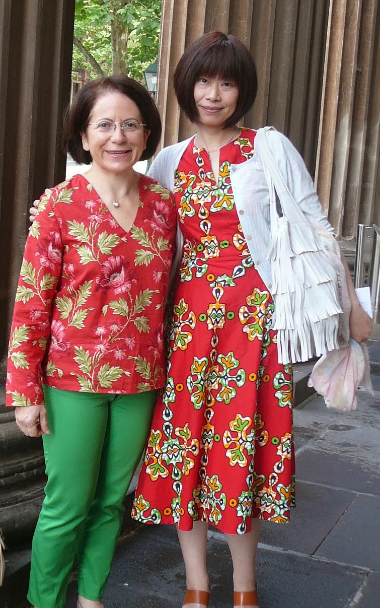 TJ, Yoshimi and I had a great Indian dinner on the Friday night, wearing our own makes. TJ and Yoshimi‘s write ups give you a better idea of how great the weekend was. GJ’s and Clear it outlet were my Friday afternoon fabric pre-weekend purchase haunts. Yoshimi flew into Melbourne after a wonderful week with the lovely Carolyn.