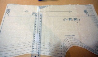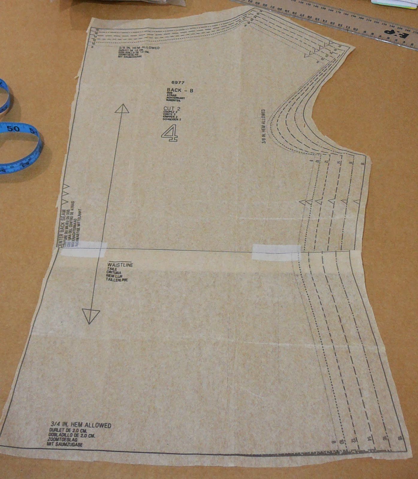Lastly I’m doing an above waist sway-back adjustment. So the fullness is only folded out at the centre back. This fold tapers to 0 at the side seam. No length is lost at the side seam, only at the centre back seam.