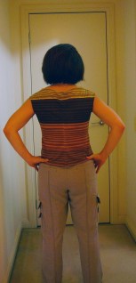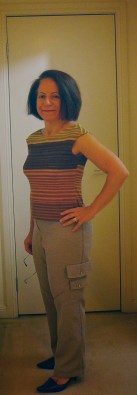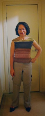 3. Sharp looking pants, Maria. I like the seams running down the back of the pants, as well as the rear welt pockets. Smart to downsize the side leg pockets for your petite size. Very smart outfit!