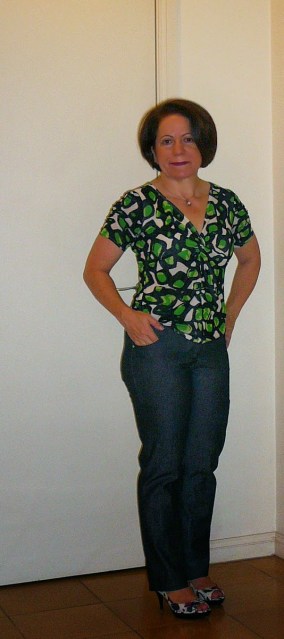 I’ve made jeans before and they were casual so I could wear sneakers with them. These are the dressy pair because the hem is lower and I can wear these with heels. These shoes needed an outfit 🙂