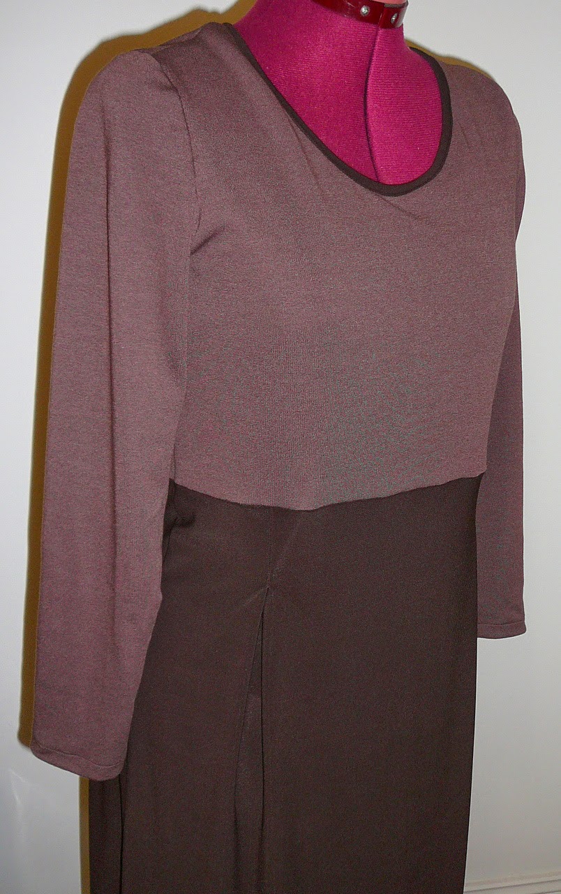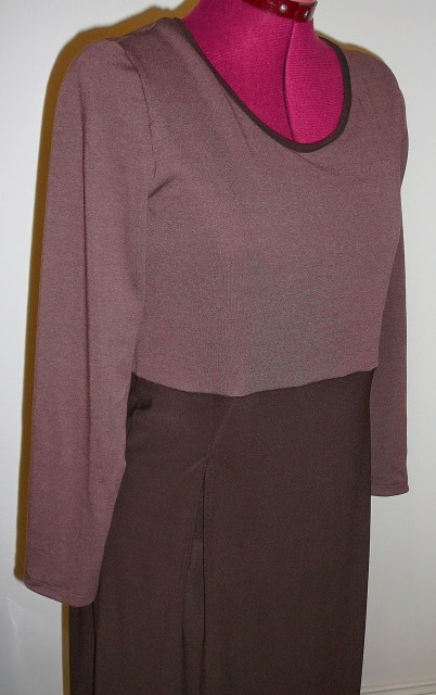 I’ve used a ponte knit for the bodice and sleeve. Then the dress skirt and bindings are made of a softer knit.