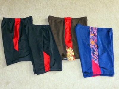 The mid thigh length versions are a good length to use up leftover lycra for the side panels.