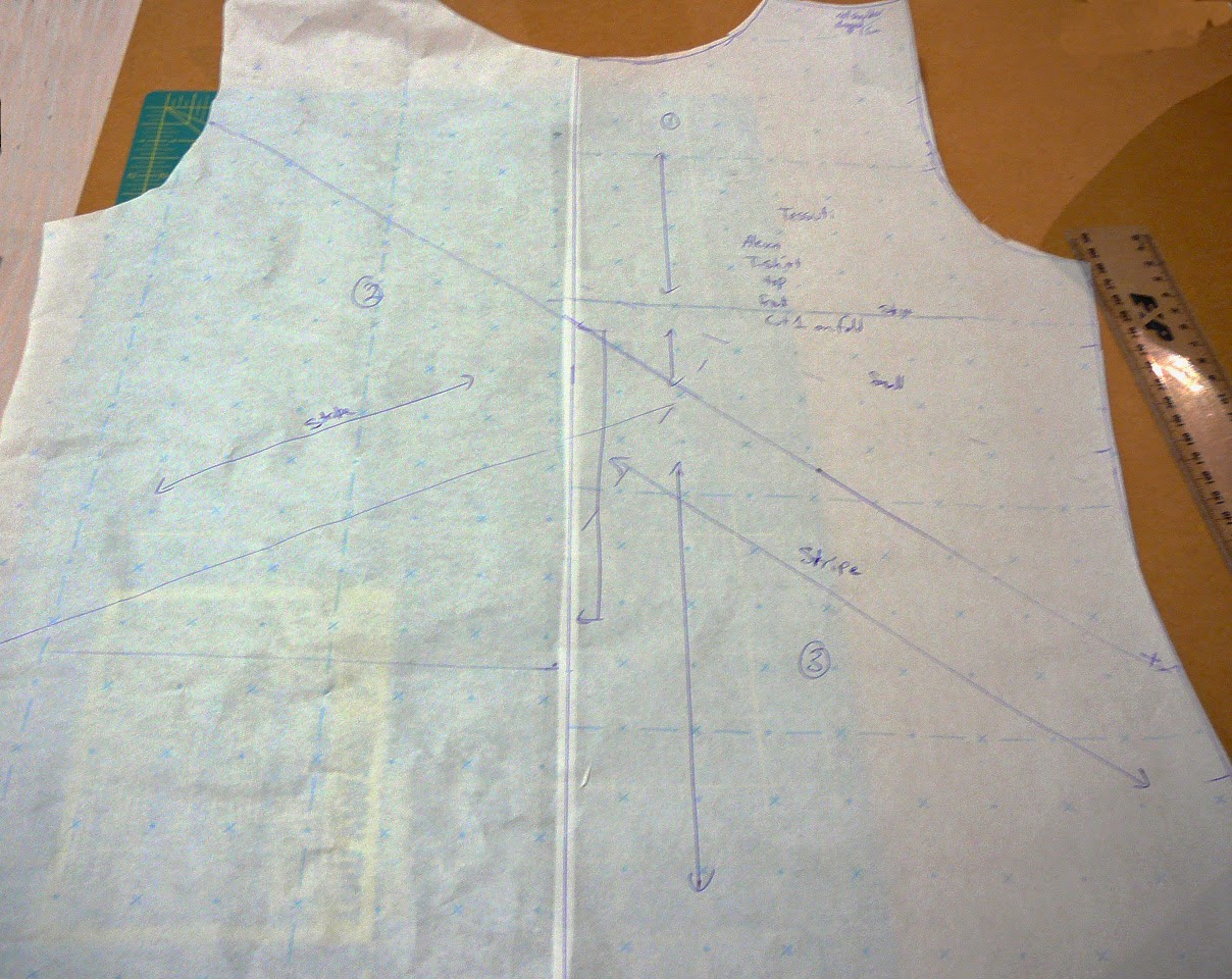 Here’s where I started. The Alexa tee front piece is divided into 3 angled sections.