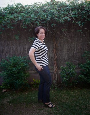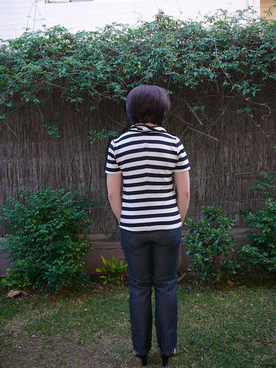I had been mulling about how to use this stripe fabric and created a Stripe pinterest board. And then I realised, I wear polo type tops on weekends anyway, hence a couple of Jaywalk tees.