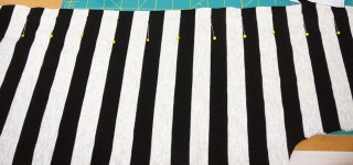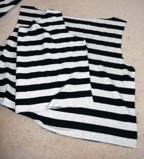 I’ve used the black stripe for the neck and armhole bands. The elastic is encased in the joins at the waistline.