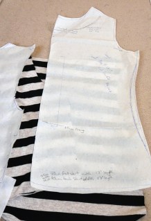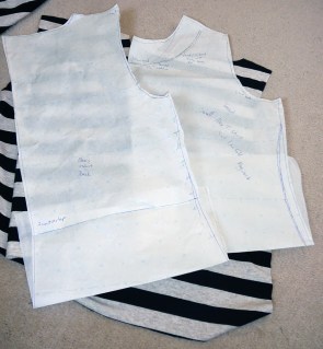 These patterns show the dropped neckline needed for this dress. While I’ve shaped the centre back pattern for an Alexa top, I kept the centre back on the fold so this dress top would billow.