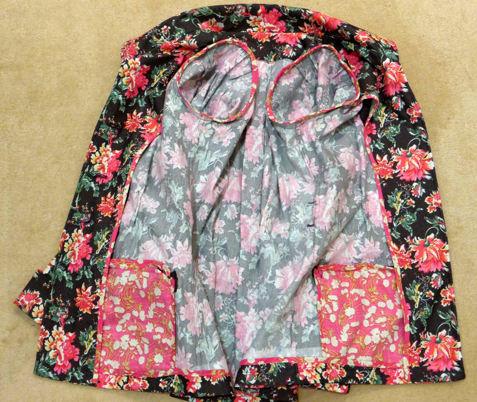 I love printed jackets, this one is really fun and will go with lots of things. Can't believe you matched the cuffs and pockets, great attention to detail! I think an unlined jacket is more work than a lined one and you know those insides are going to be seen, yours looks great on the inside too.